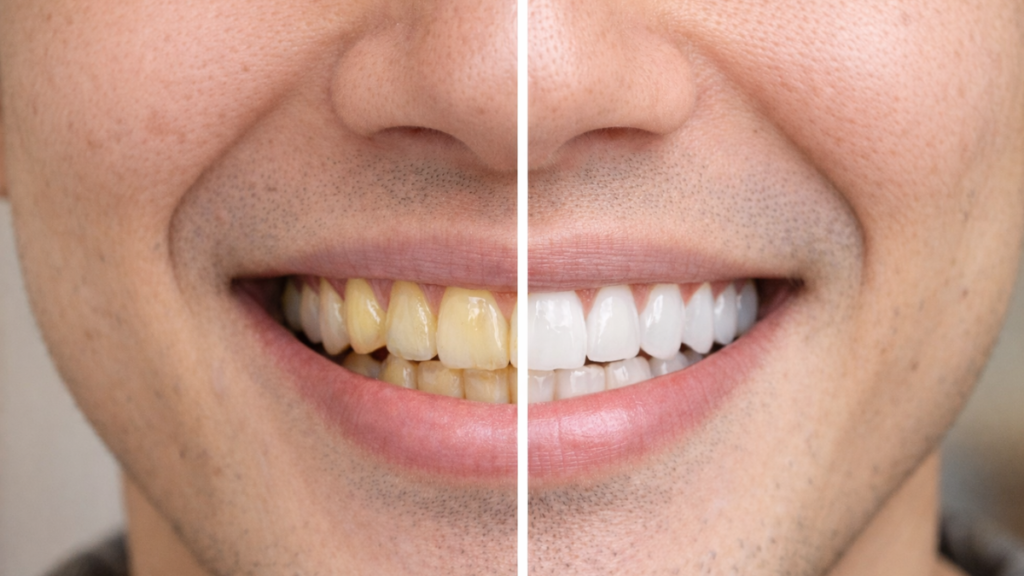 男性の場合、歯が少し明るくなるだけで